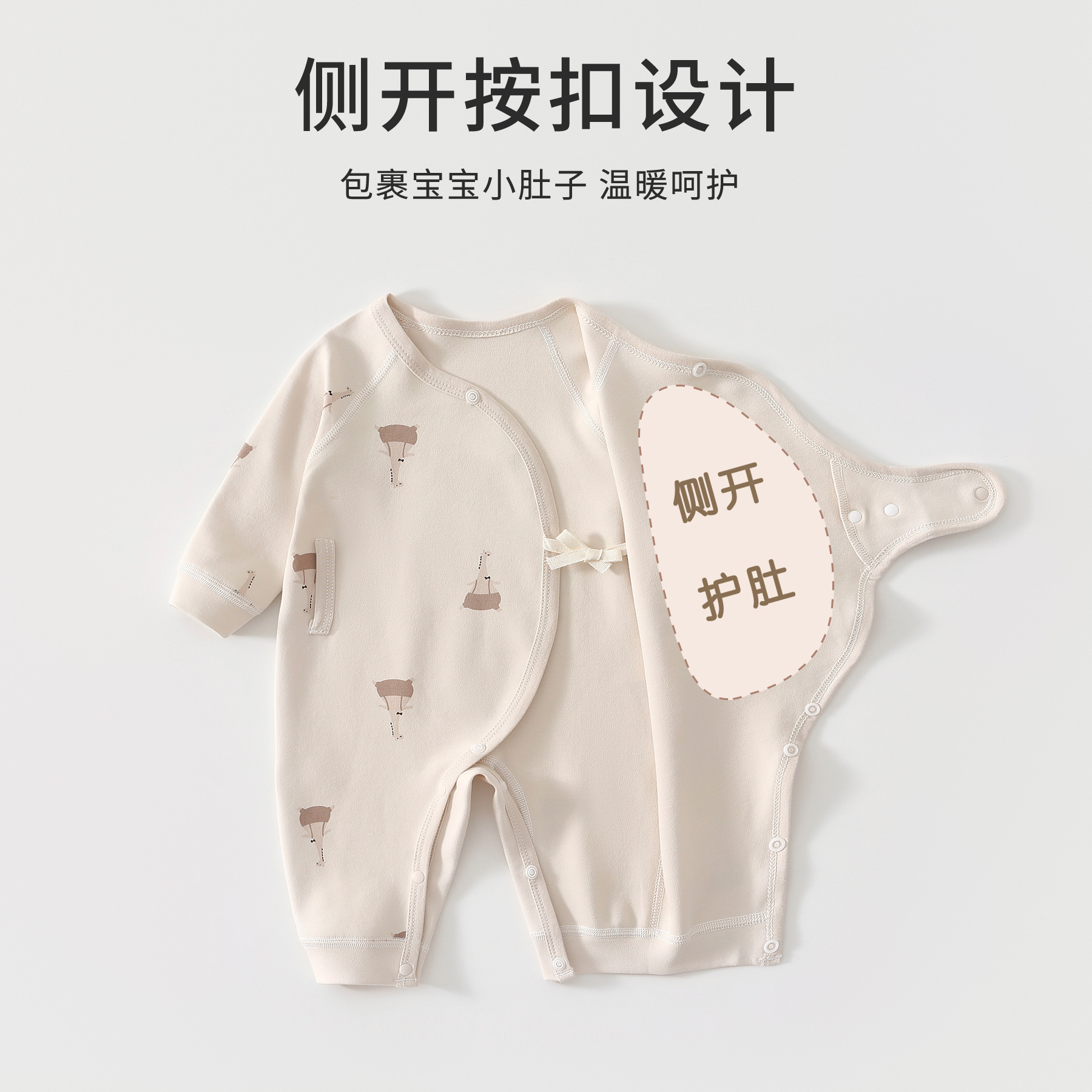 新生婴儿连体衣秋冬季 舒绒贴身护肚魔术贴哈衣 男女宝宝蝴蝶衣52码