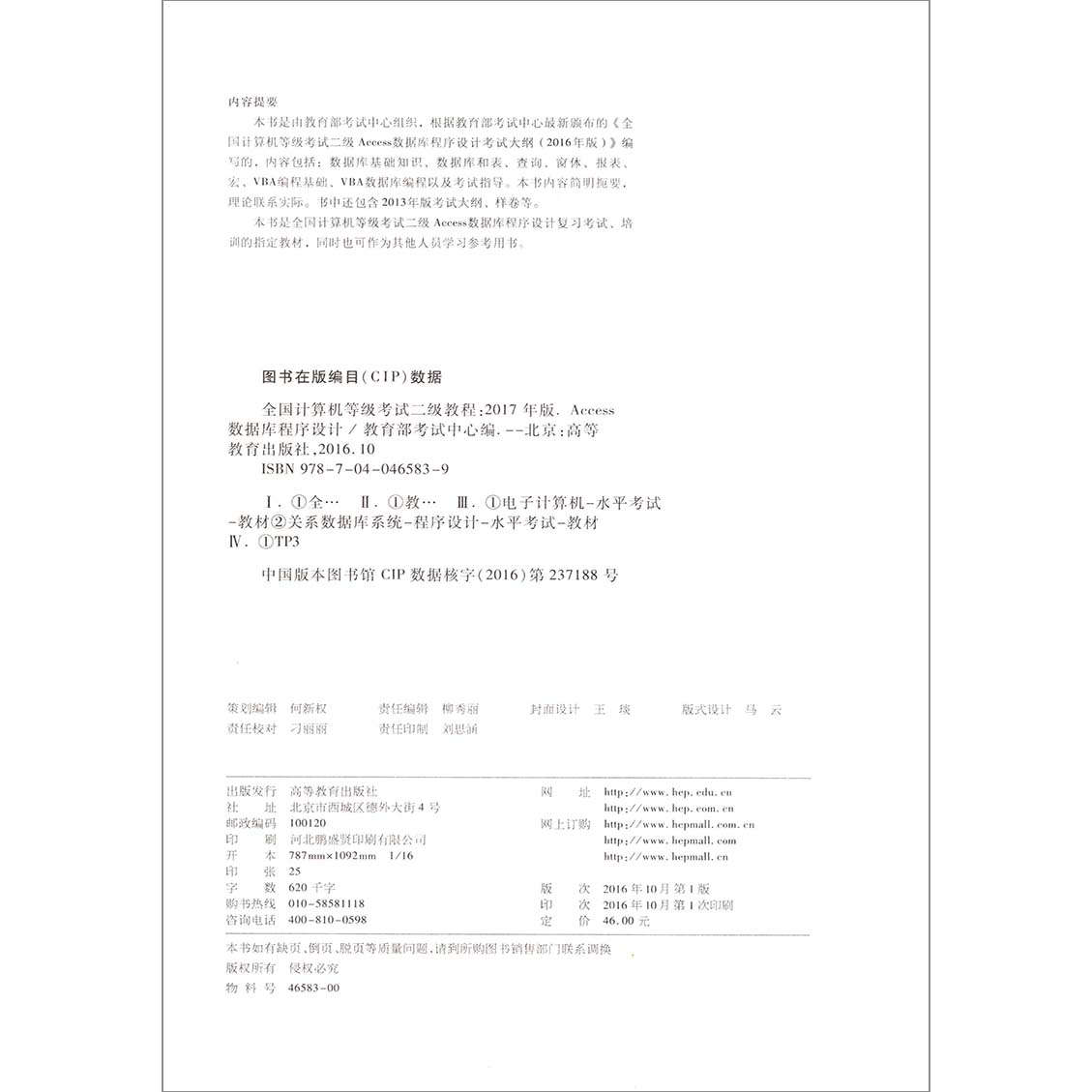 从入门到精 新大纲 高等教育出版 2017年全国计算机等级考试二级教程—Access数据库程序设计 社 书籍 陈雷 辅导教材 高教版 培训