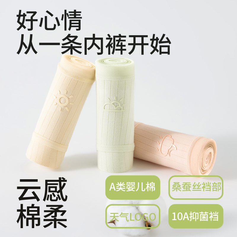 裸感中腰少女生柔软三角裤 7A级抑菌桑蚕丝裆2025新款 纯棉女士内裤
