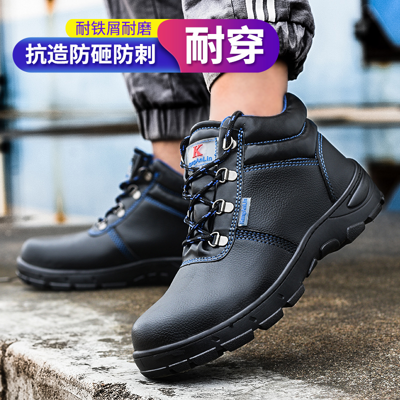 防水钢包头老保四季 高帮防砸防刺穿轻便防臭工作鞋 透气 男士 劳保鞋
