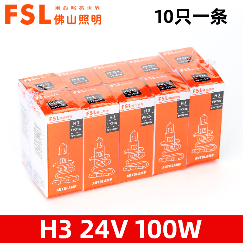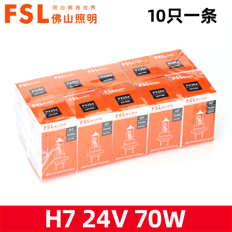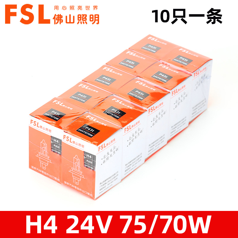 佛山照明24V货车汽车大灯卤素灯泡H1H7超亮H3雾灯H4远近一体10只