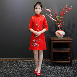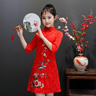 女童旗袍秋款 公主裙中国风刺绣小女孩复古中秋节日演出服 儿童唐装