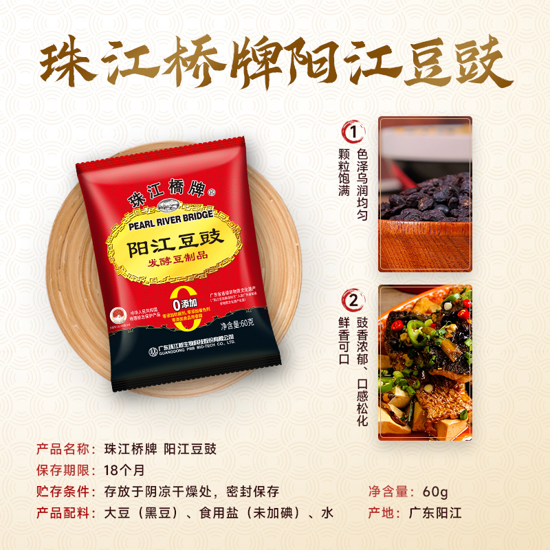 珠江桥牌广东阳江豆豉正宗特产60gx3原味黑豆豆鼓干豆豉粒