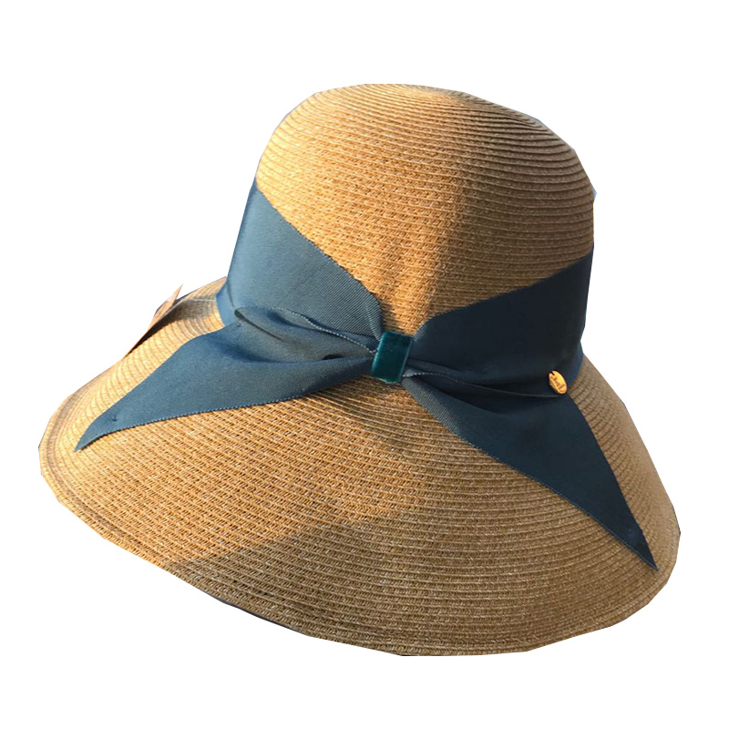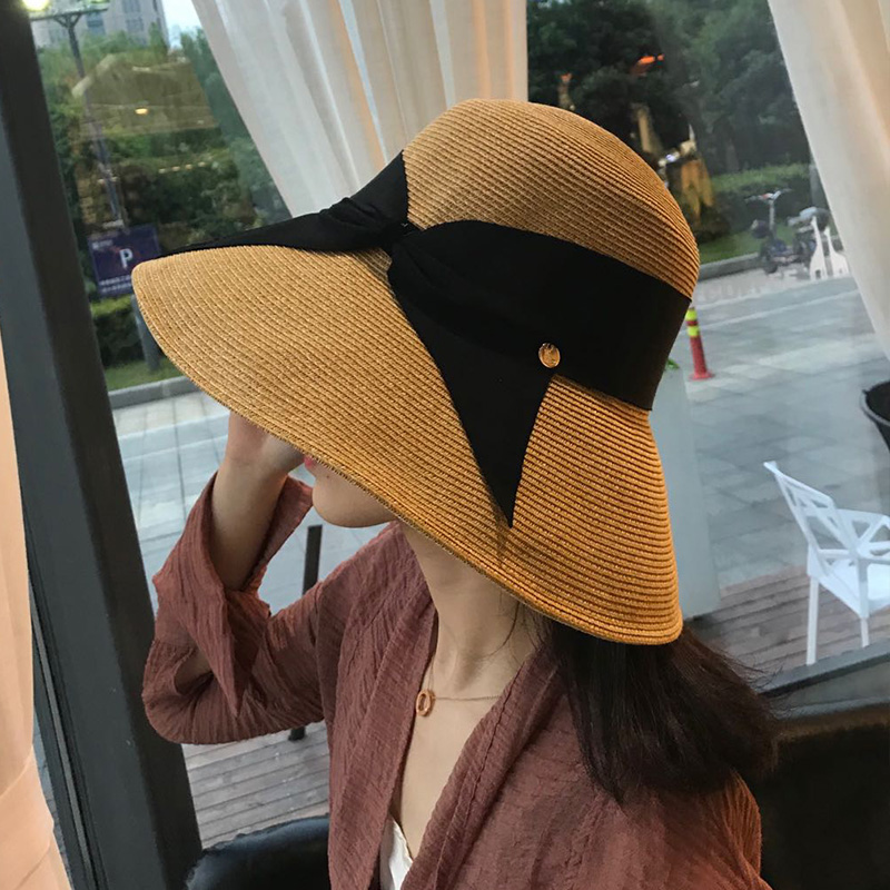 日本UV防晒帽子刘亦菲同款 草帽可折叠蝴蝶结百搭遮阳大头围渔夫帽