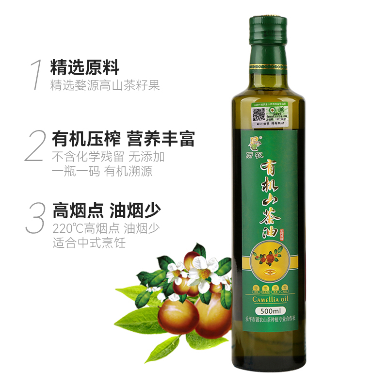 历农有机红花山茶油500ml 冷榨纯茶油食用油纯正茶籽油官方旗舰店