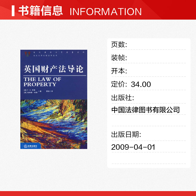 F.H.劳森 图书籍 著作 新华书店正版 中国法律图书有限公司 法学理论社科 英国财产法导论