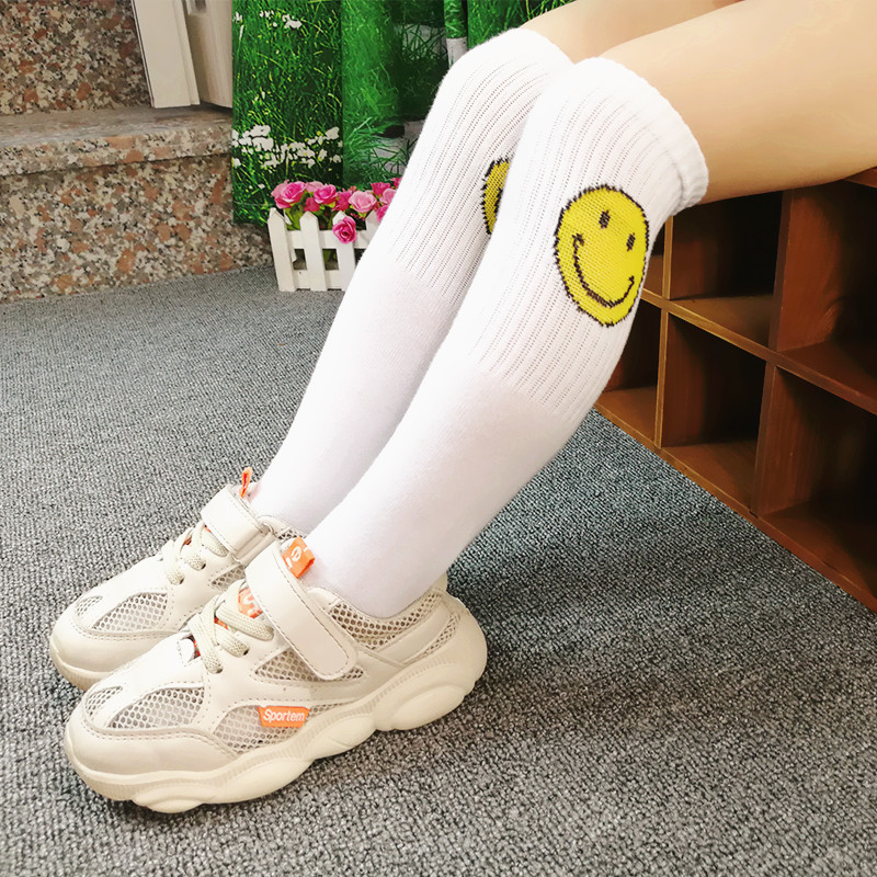 儿童袜子2023春夏新款 棉质笑脸高筒袜男女童长筒及膝袜过膝袜嘻哈