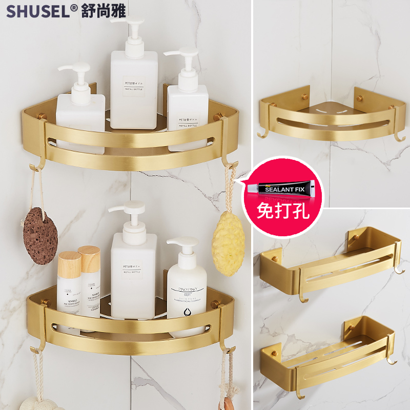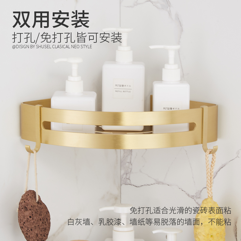 卫生间转角置物架浴室拉丝金色置物篮洗澡间壁挂免打孔三角篮方篮