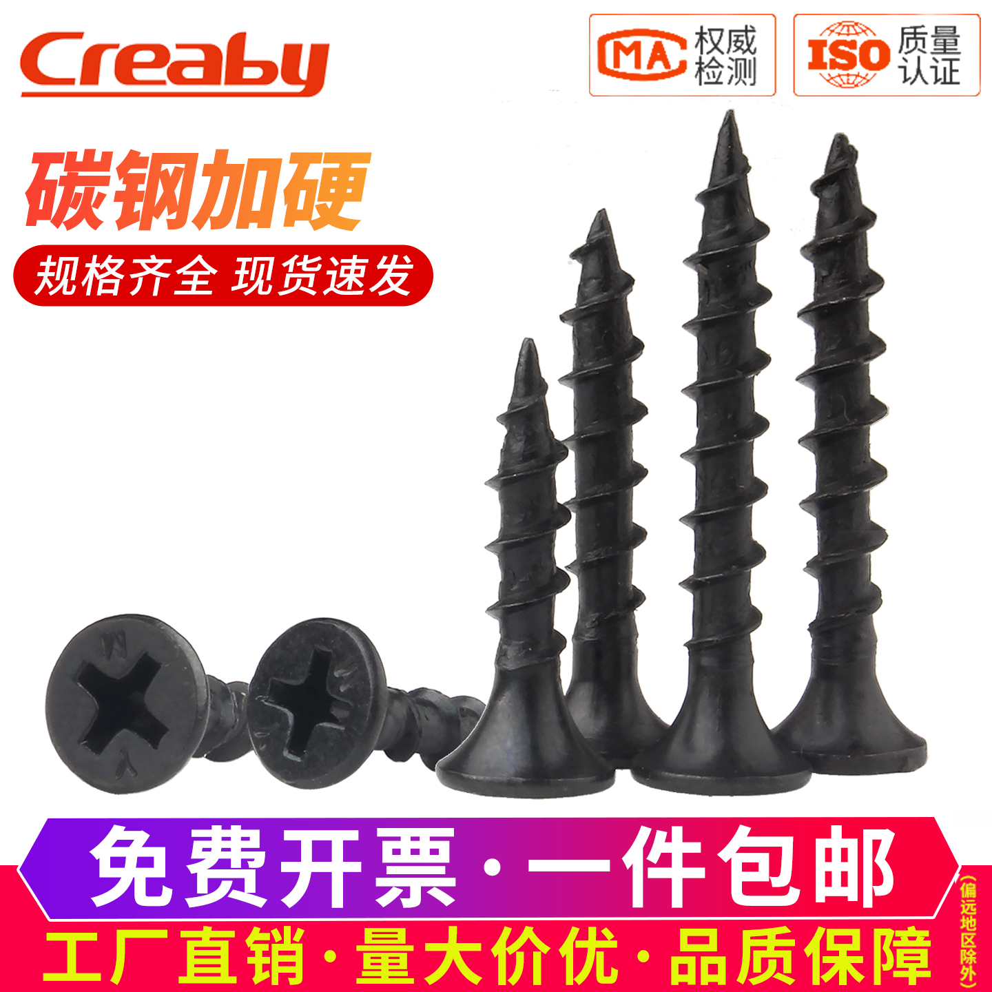 铁黑平头加硬自攻螺丝快速攻牙螺丝钉十字沉头自功木牙粗牙螺钉M4