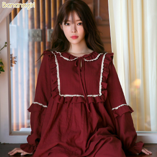 秋冬情侣 全棉时代睡衣女士空气褶皱纱加厚家居服套装 双11现货