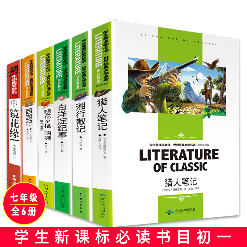 全6册 名著初中生 孙犁白洋淀纪事湘行散记猎人笔记镜花缘西游记鲁迅朝花夕拾原著初一课外阅读书籍七年级上册阅读书籍畅销书经典