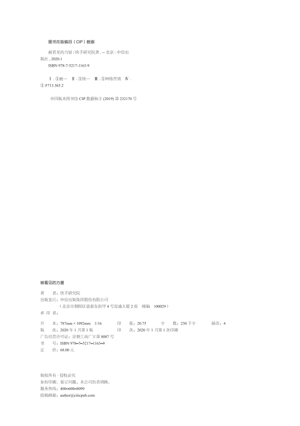 快手研究院 著 短视频行业生态逻辑人工智能快手 被看见 社图书正版 快手是什么 中信出版 书籍 力量