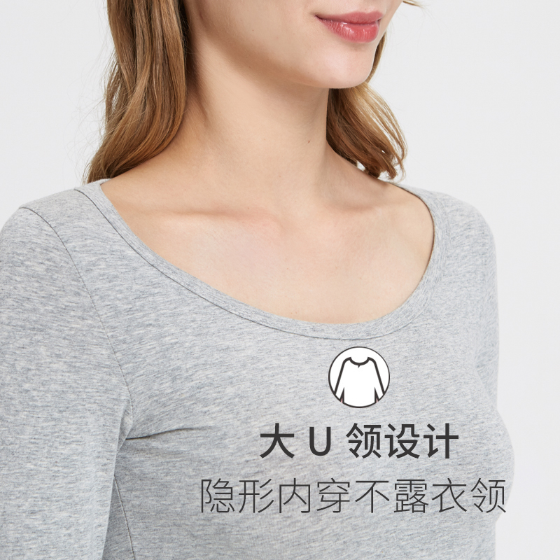 棉文化新疆棉纯棉保暖全棉保暖衣紧身秋衣单件上衣女士贴身打底衫