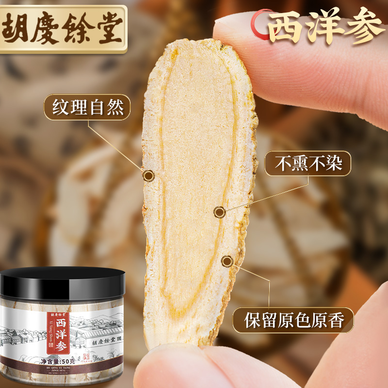 胡庆余堂官方滋补旗舰店西洋参片泡水主根切片人参片泡茶泡酒50g