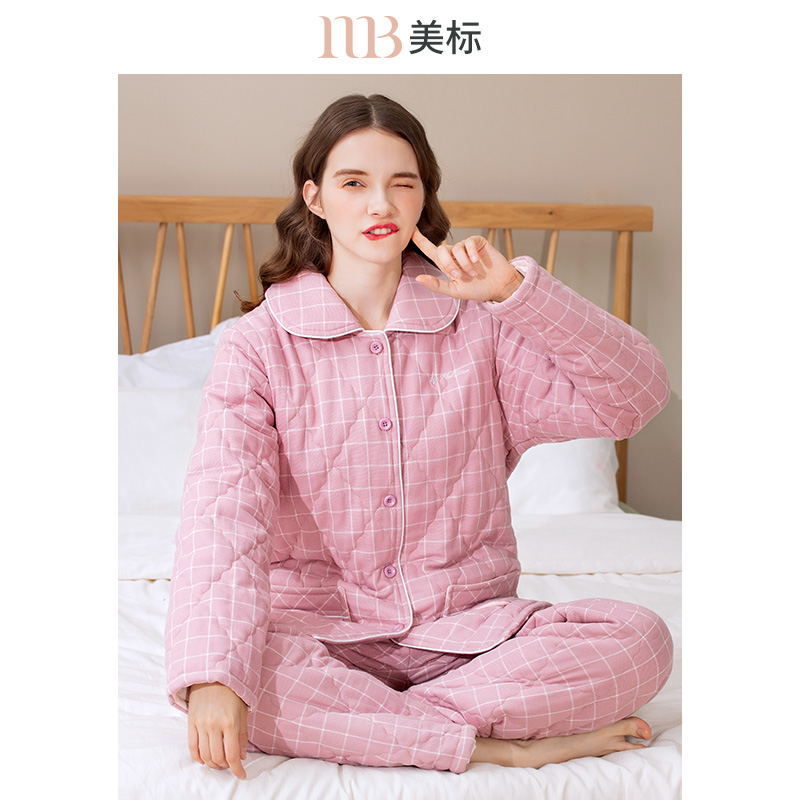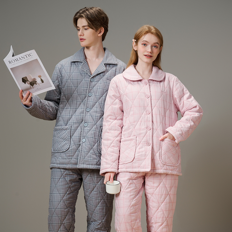 美标可外穿三层夹棉加厚秋冬纯棉家居服套装 清仓 男女睡衣 特价