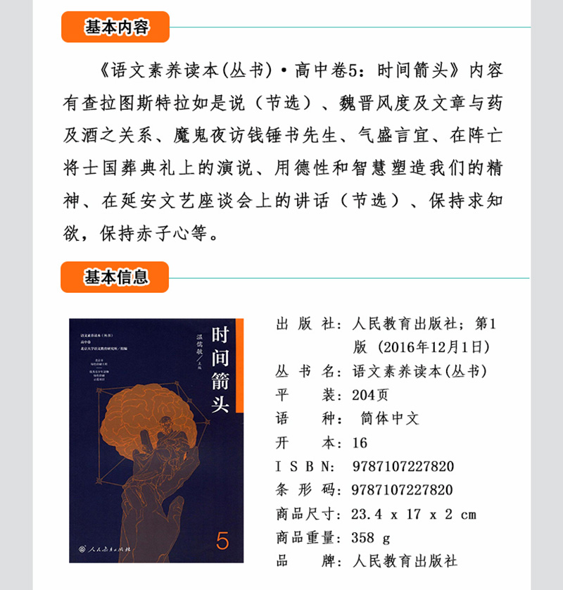 温儒敏 时间箭头 主编 人民教育出版 语文素养读本 社 高中卷5