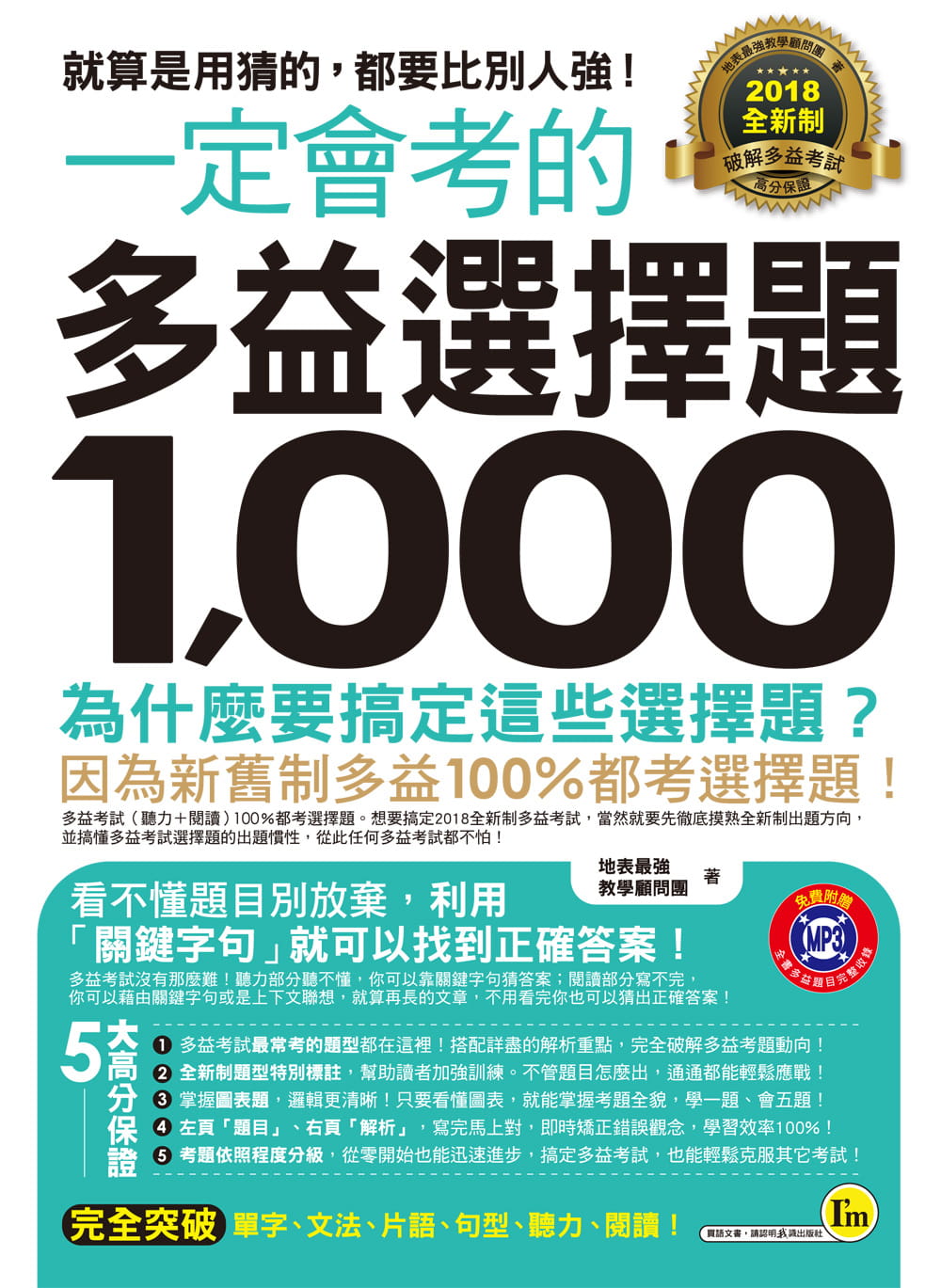 地表zui强教学顾问团 附1CD 一定会考 都要比别人强 我识 2018全新制多益选择题1000:就算是用猜 现货
