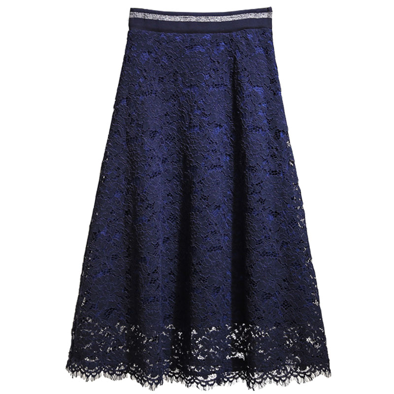 森马半身裙女松紧腰A字裙气质夏季 拼接蕾丝波点长裙优雅 2025新款