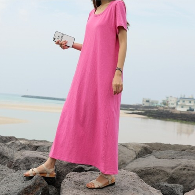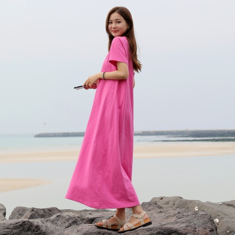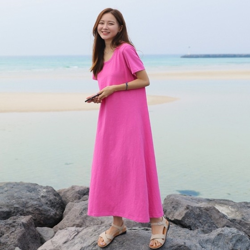 韩版 A字T恤连衣裙女中长款 宽松大码 时尚 纯棉裙子 夏装 套头短袖 新款