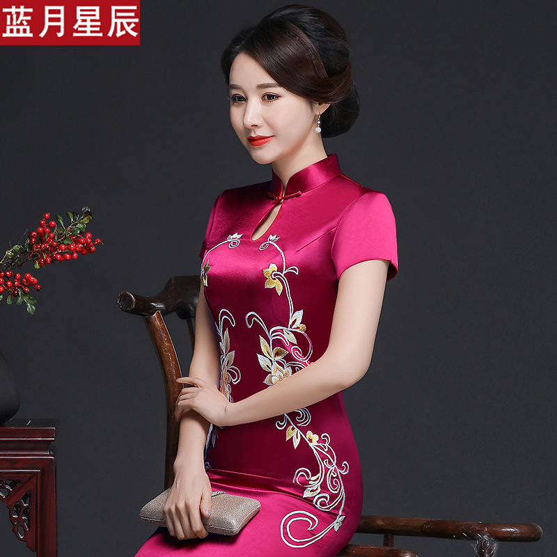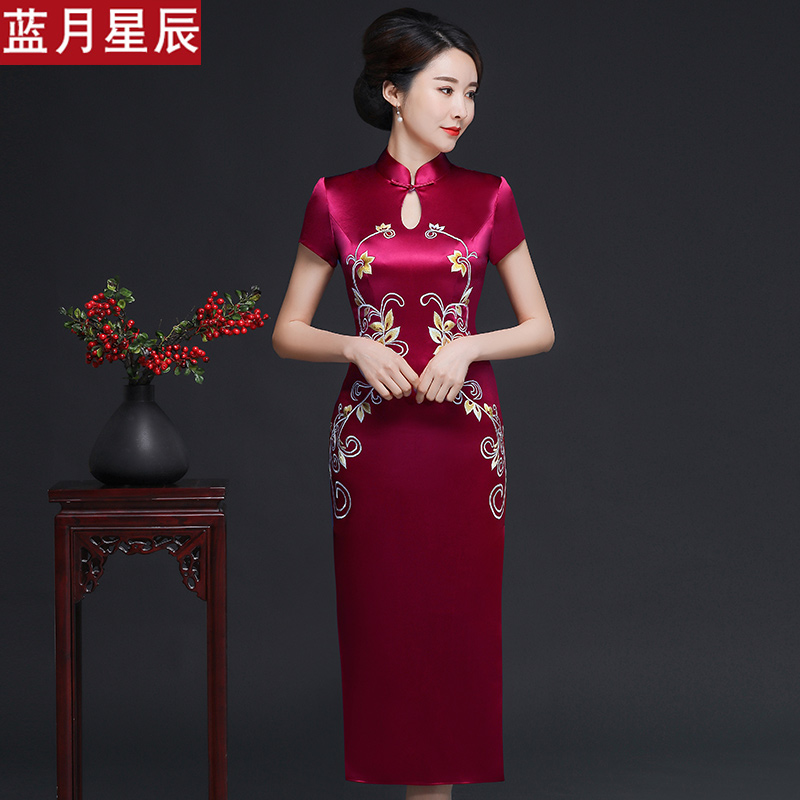 喜服旗袍婚宴礼服女 结婚妈妈红色烫钻新中式 喜婆婆婚宴装 2025夏季