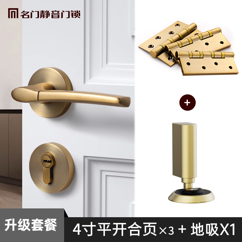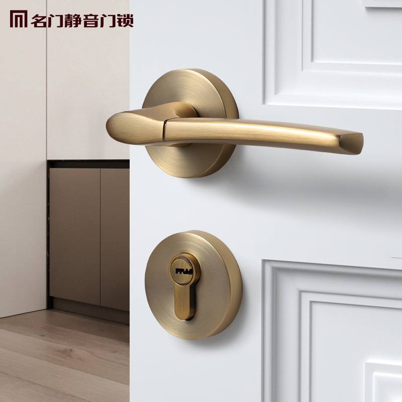 名门静音门锁室内卧室房间锁家用通用锁具木门金色美式 分体门把手
