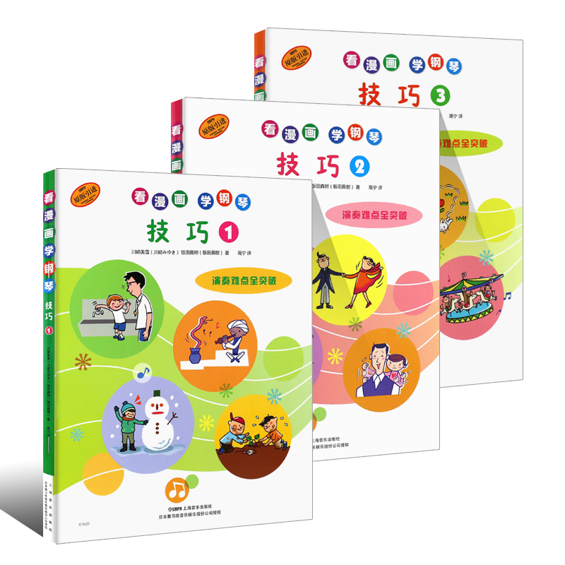正版 全套看漫画学钢琴技巧123册 演奏难点全突破 川崎美雪 引进 上海音乐 幼儿儿童钢琴初学入门启蒙基础练习曲教材教程书 原版