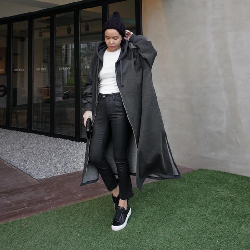 加厚开衫 新款 宽松显瘦长款 加绒卫衣女韩版 过膝开叉外套潮 连帽长袖