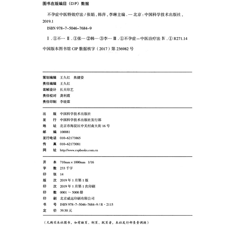 张娟 中国科学技术出版 韩萍 9787504676849 社 李琳主编 不孕症中医疗法