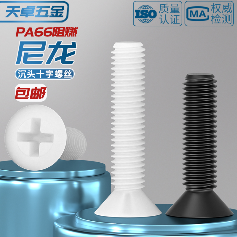 绝缘尼龙塑料塑胶沉头十字螺丝平头螺钉小螺栓M2M2.5M3M4M5M6M8mm