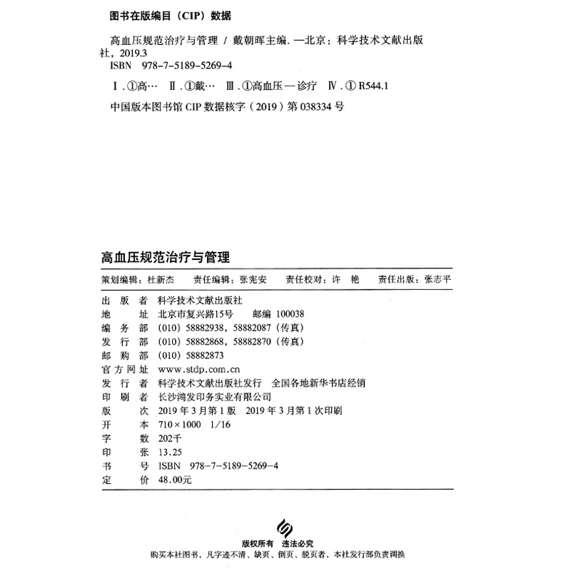 社 高血压规范治疗与管理 科学技术文献出版 主编戴朝辉 9787518952694 可供临床各级医师阅读参考