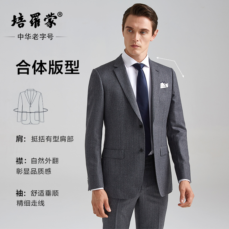 西服套装 培罗蒙羊毛西装 条纹新郎结婚礼服修身 商务休闲正装 男士