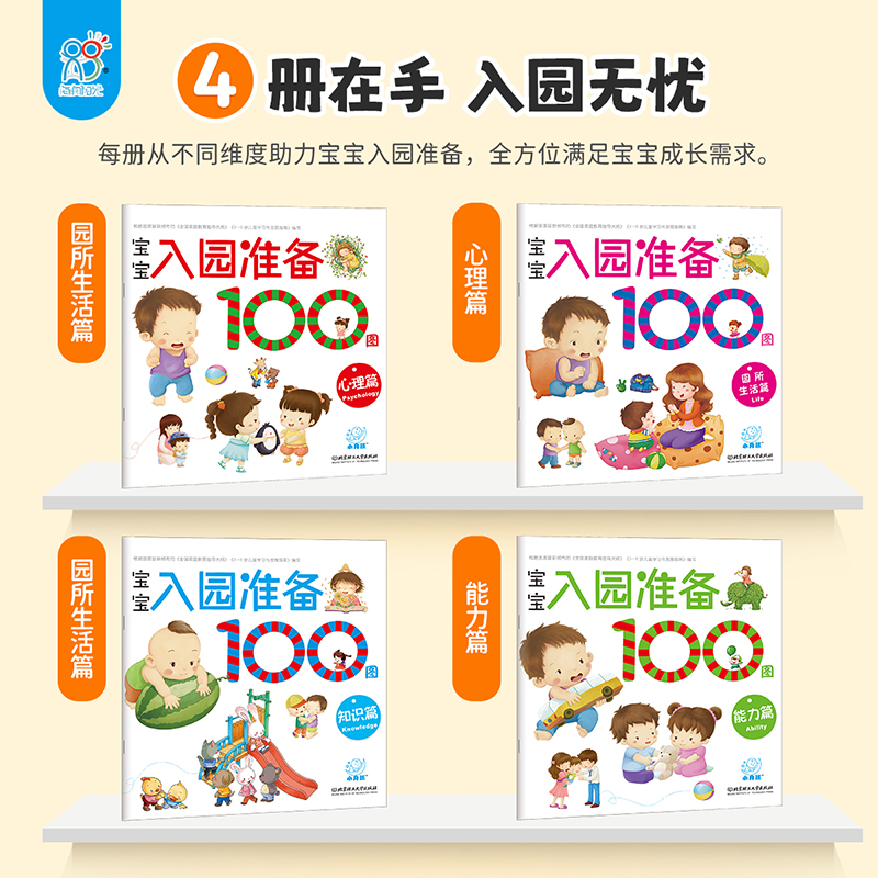 海润阳光 全4册宝宝入园准备100图赠家长指导手册适合1岁2岁到3岁儿童图画书幼儿园入学前绘本我爱幼儿园阅读书籍