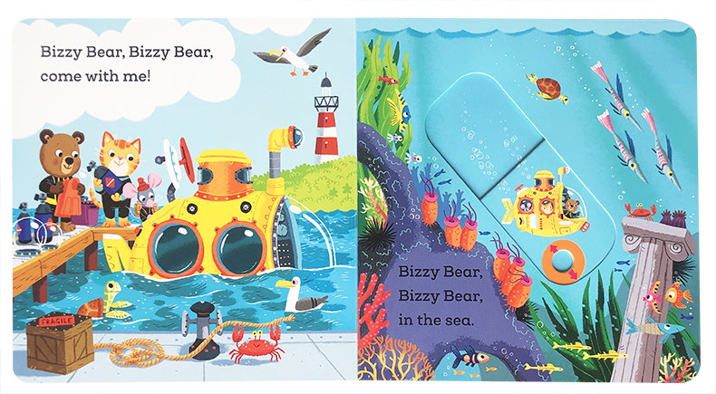 deepsea Bear diver 忙碌 3岁幼儿早教英语认知读物 英文原版 小熊很忙深海潜水员儿童机关操作抽拉玩具纸板书0 绘本Bizzy