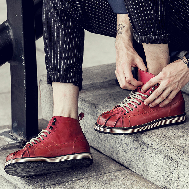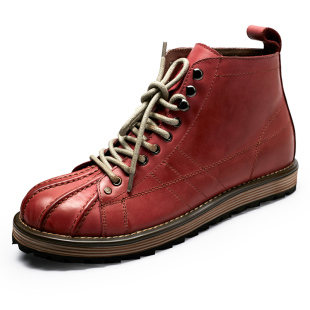 靴松糕底潮鞋 贝壳头男士 靴子马丁靴男英伦复古男靴短靴真皮靴工装