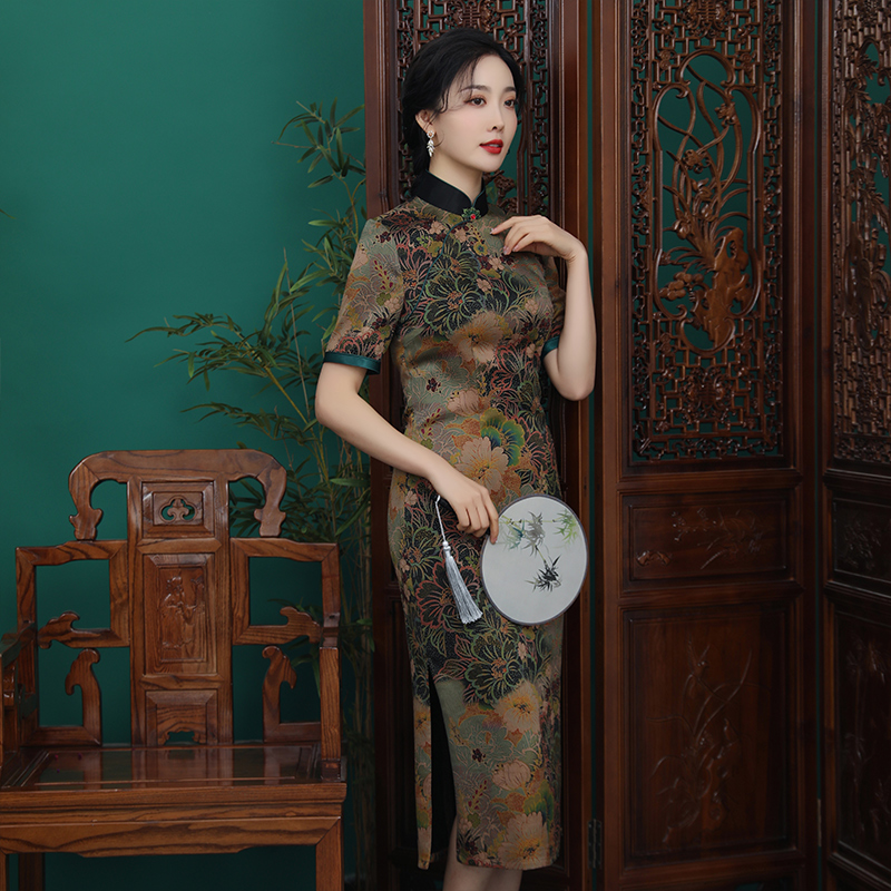 崔万志旗袍裙 珍珠缎香云纱旗袍国风复古订珠中长款 蝶恋 镜花缘