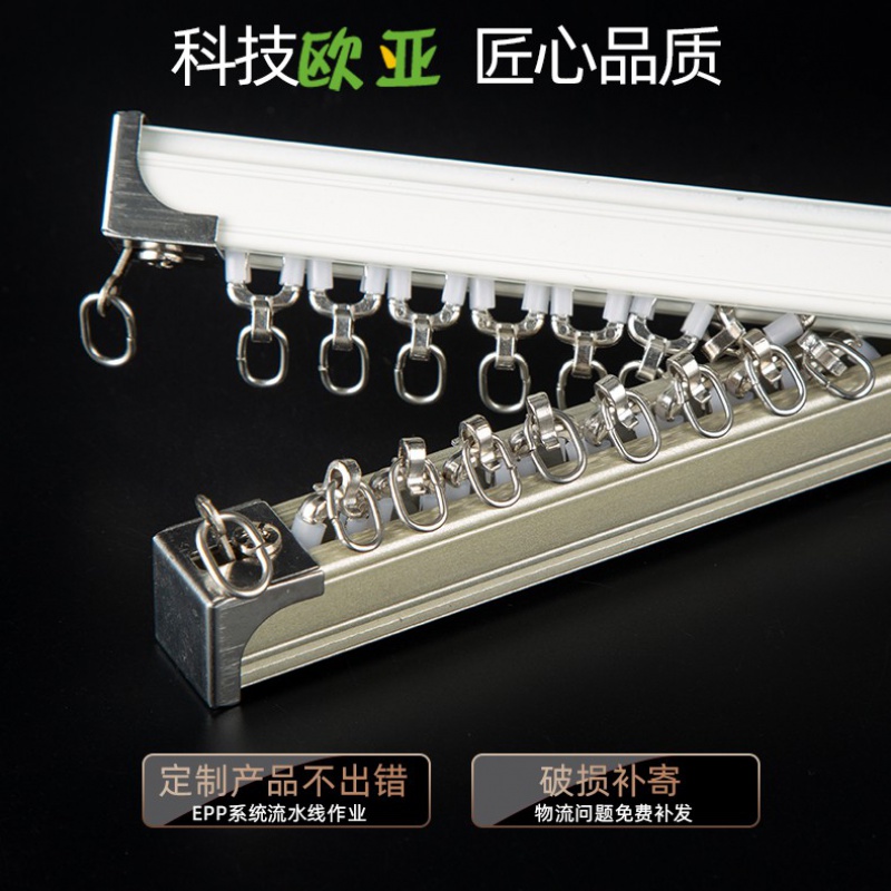 窗帘轨道滑轮罗马杆顶装 免打孔滑道卧室LU形弯轨单双弯曲导轨