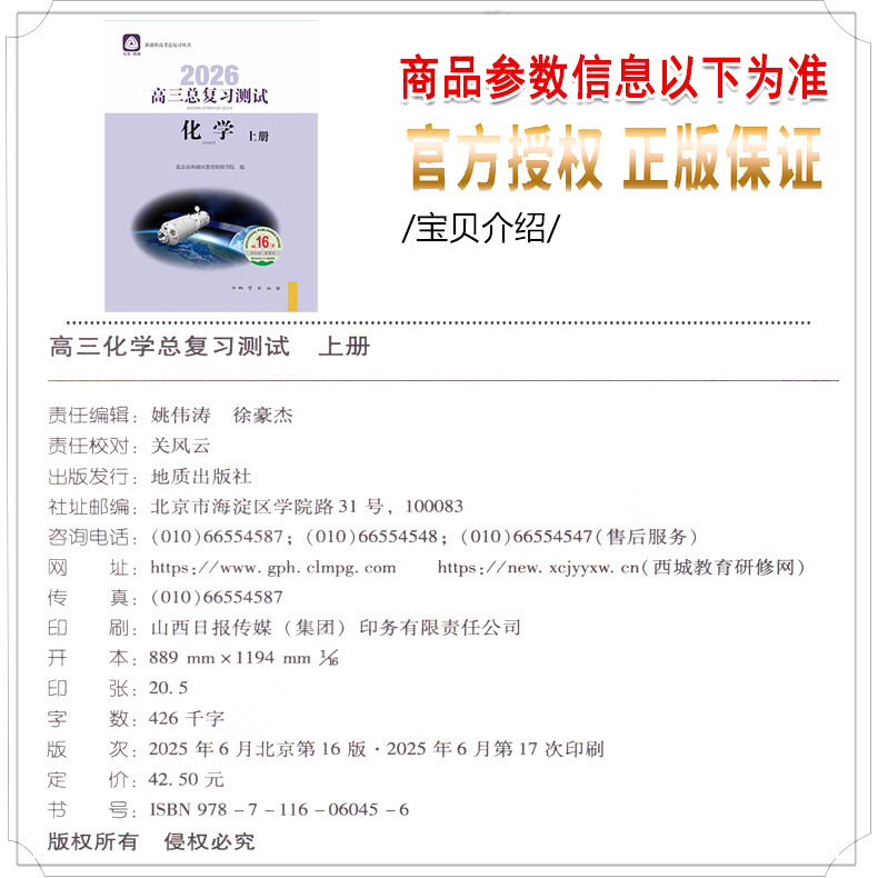 高三化学总复习测试 学习探究诊断 上册 北京市西城区教育研修学院编 高3高考化学总复习 第16版 2026北京西城