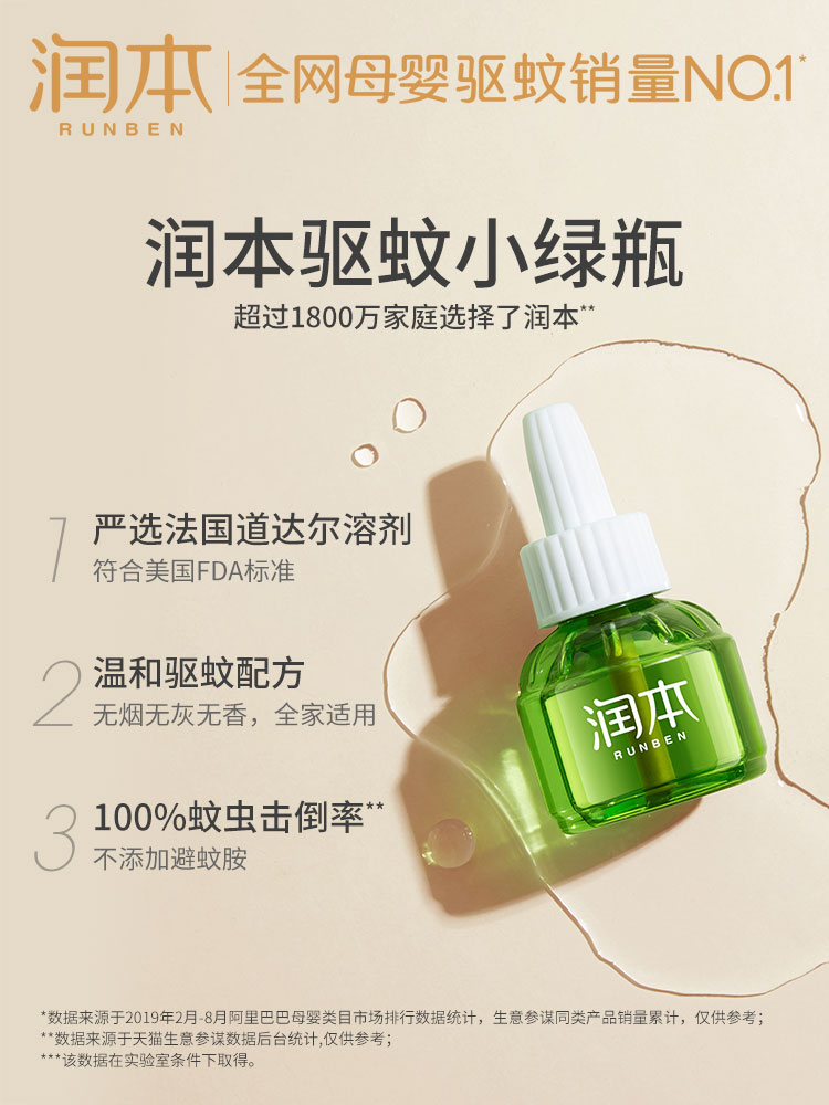润本电热蚊香液10瓶套装 婴儿无香灭蚊液家用宝宝驱蚊液送加热器