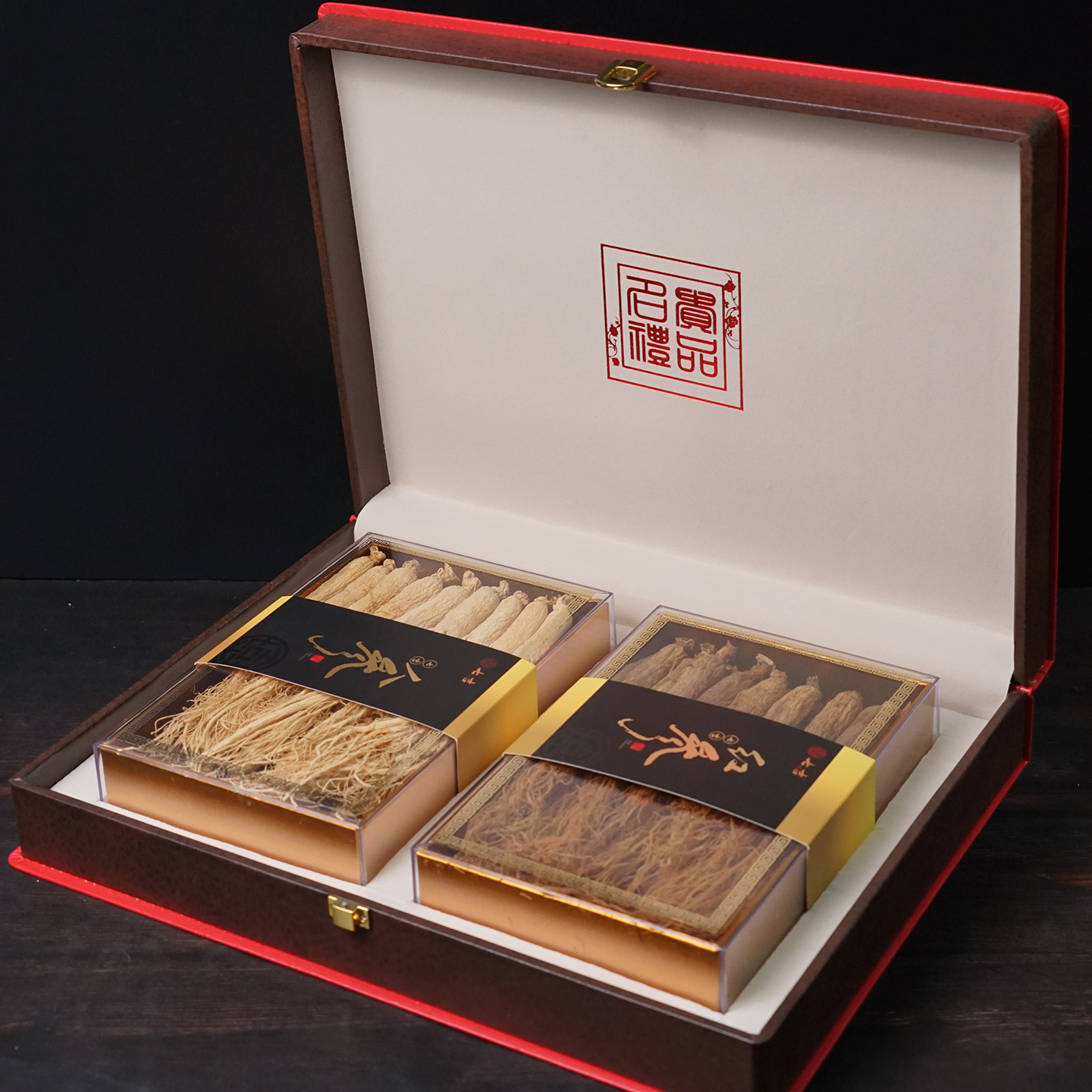 七吉红参白参礼盒500克送父母送老师量贩礼盒装 人参过节送礼高档