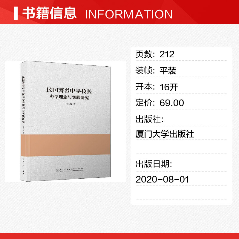 代小芳 书籍 厦门大学出版 正版 新华书店旗舰店文轩官网 社 民国著名中学校长办学理念与实践研究