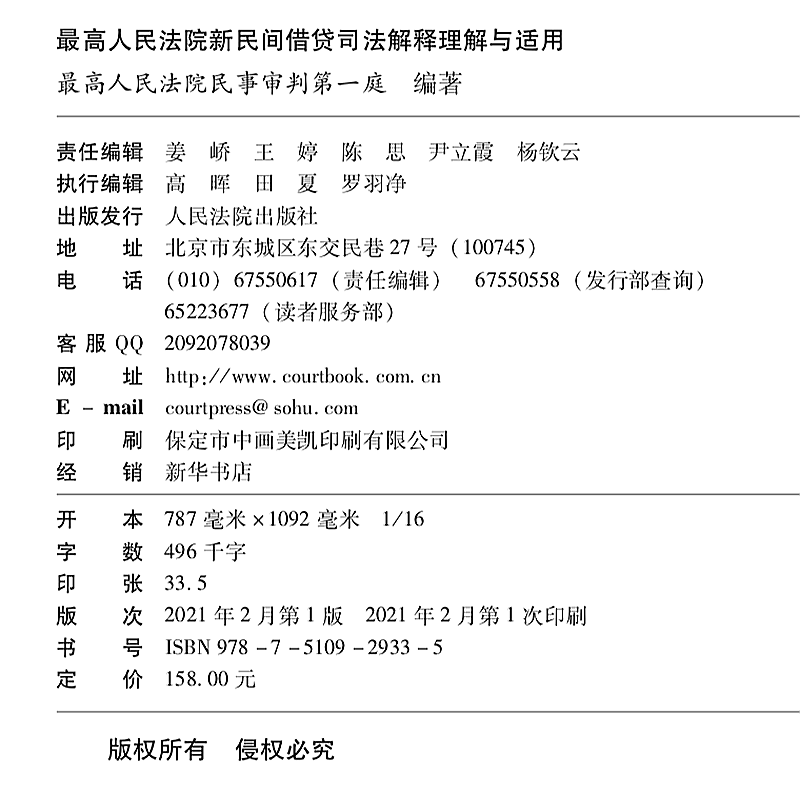 人民法院出版 最高人民法院新民间借贷司法解释理解与适用 社 2021版 速发