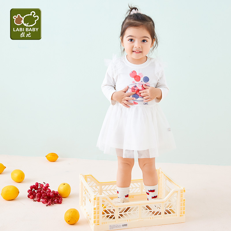 拉比童装 新女宝宝裙子可爱运动风红色连衣裙 2025儿童公主裙女秋装