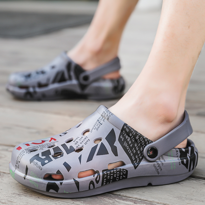 凉拖鞋 迷彩涂鸦洞洞鞋 时尚 帛步2025新款 沙滩凉鞋 男士 潮流个性 夏季