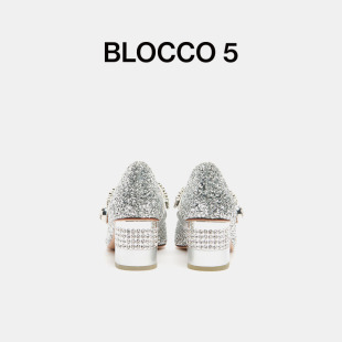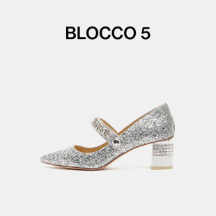 秋季 BLOCCO5女鞋 尖头高跟鞋 时尚 镶钻粗高跟鞋 婚鞋 杨超越同款