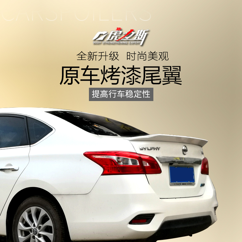 加宽刀锋款 免打孔改装 轩逸 19新轩逸尾翼 碳纤纹 适用12 虎力斯