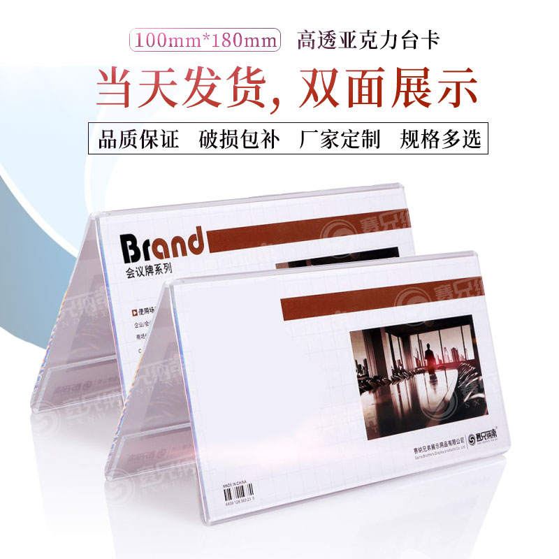 定制 200桌牌台卡架三角形桌面展示牌评委名字牌 V型三角会议牌座位牌亚克力透明 双面台牌台卡桌牌席位牌100