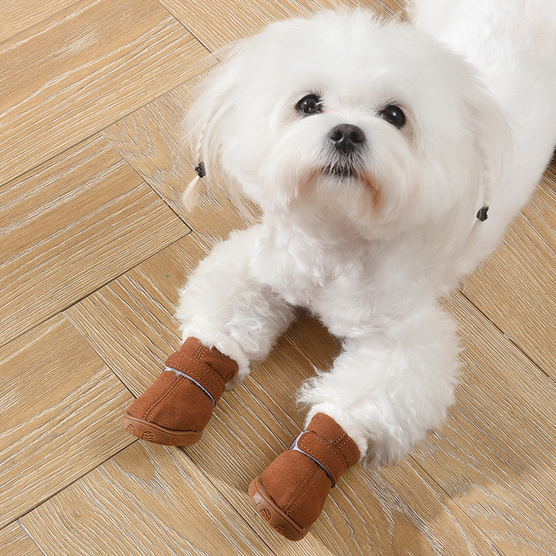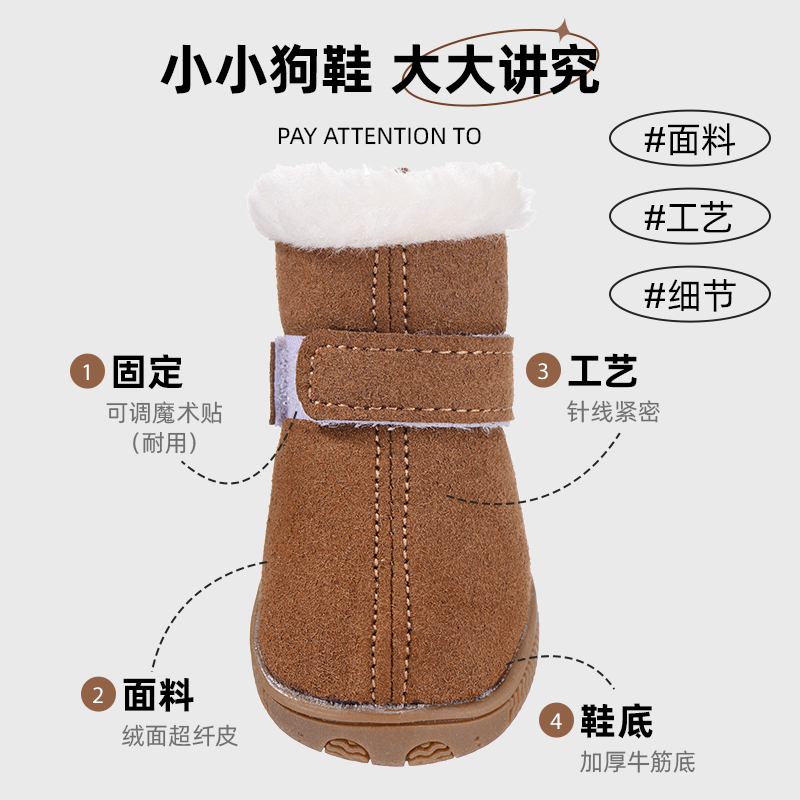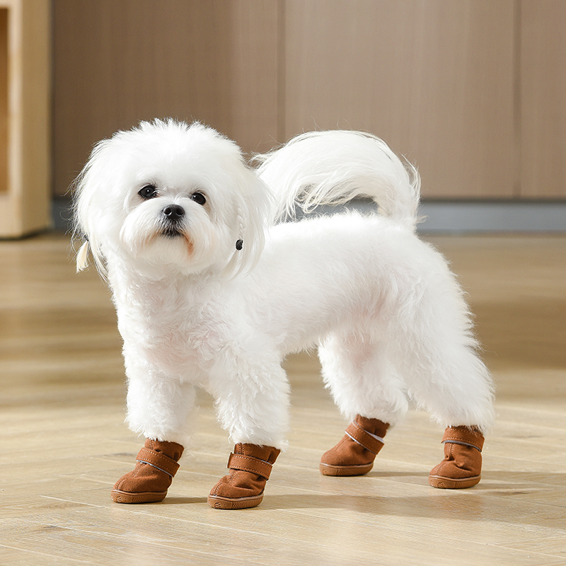 小型犬比熊秋冬棉鞋 小狗鞋 透气脚套雪地靴 子泰迪4只宠物鞋 狗狗鞋