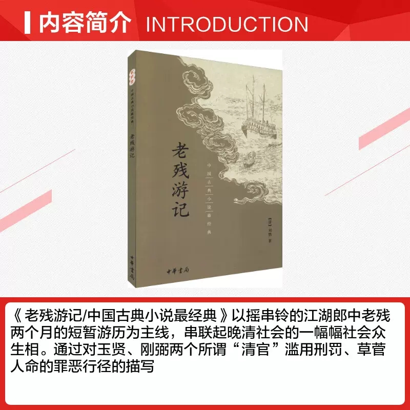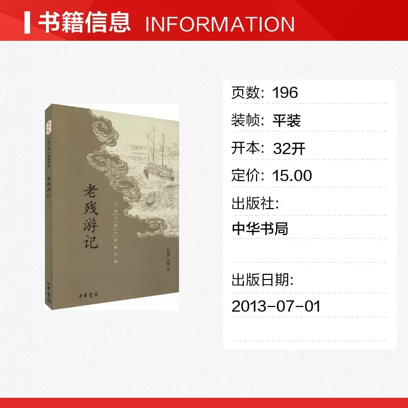 足本无删减中华书局刘鹗著作有注解译文难字注音晚晴四大谴责小说之一中国古诗词文学书籍 新书老残游记中国古典小说经典 现货 正版