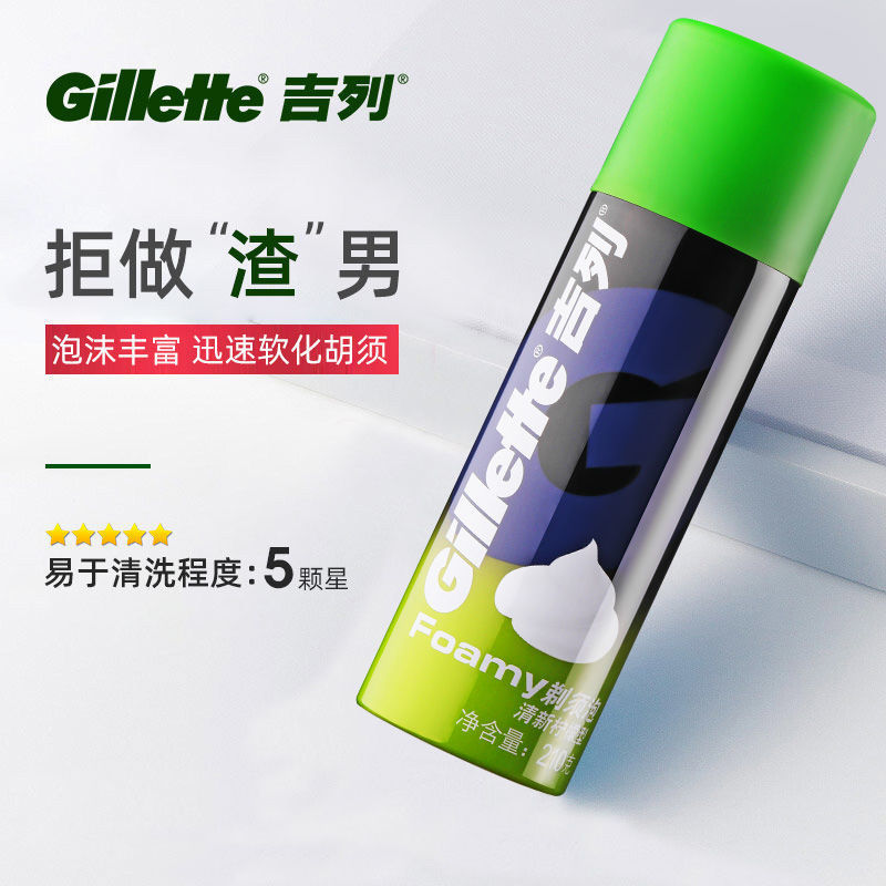 吉列剃须泡沫柠檬香型210g男士 手动剃须刀刮胡子泡剃须膏啫喱