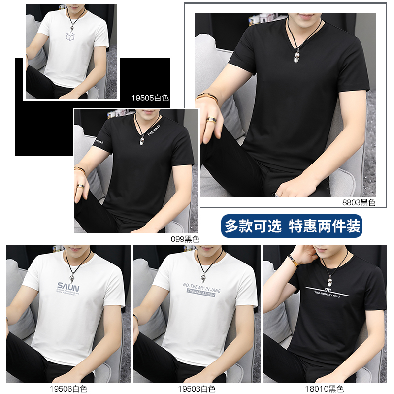 黑色上衣服潮牌潮流印花冰丝冰感半袖 t恤V领夏季 短袖 莫代尔棉男士